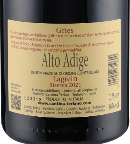 Gries Lagrein Risverva Alto Adige DOC 2021 Cantina Terlan