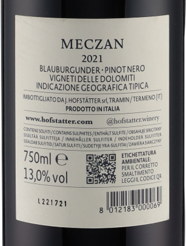 Meczan Blauburgunder Südtirol DOC 2021 J. Hofstätter