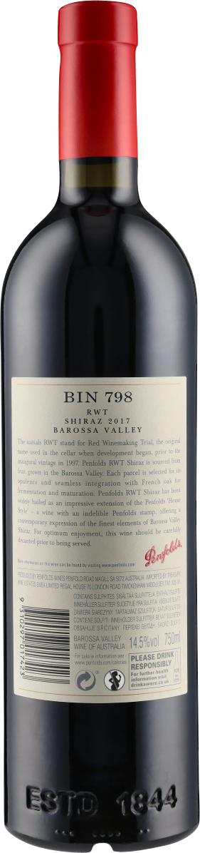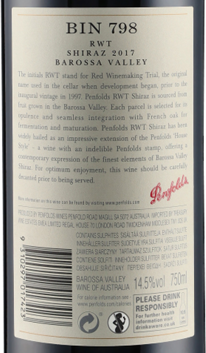 RWT BIN 798 Shiraz Barossa Valley 2017 Penfolds