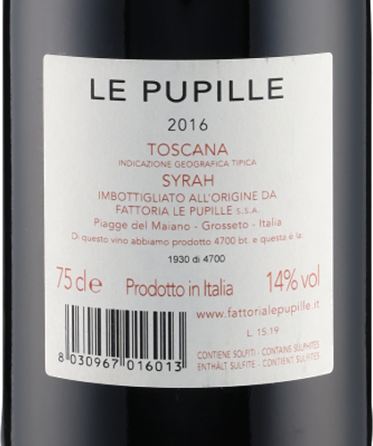 Syrah Toscana IGT 2016 Le Pupille